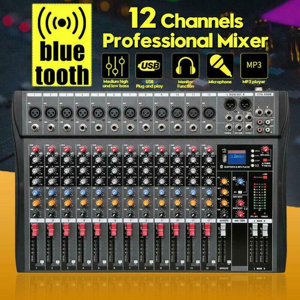 12 Channel Bluetooth Live Dj Music Studio Audio Mixer Mixing Console Usb Xlr 48v Walmart Com