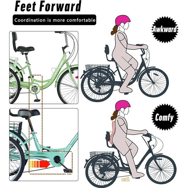 Hangnuo Upgraded Adult Tricycle 3 Wheel Bike Adult Trike Three Cruiser Bicycle 24 Inch Or 26 Inch Wheel Options 7 Speeds Pedals Forward For More Space Shopping Basket Walmart Ca